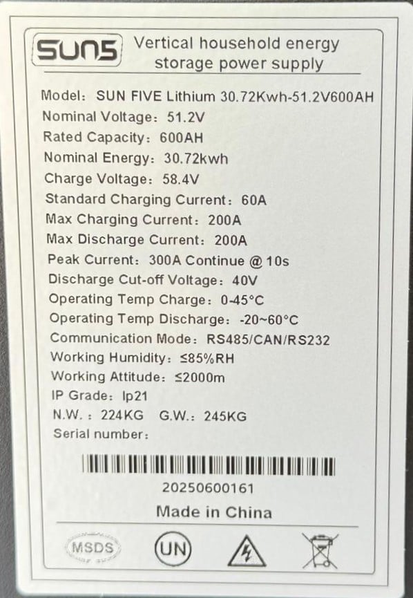 🔋 مواصفات البطارية:النوع: LiFePO4 صن فايف