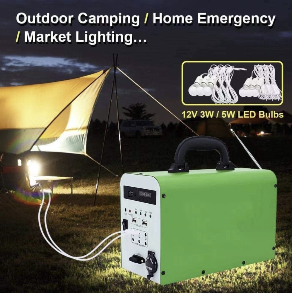 احصل على منظومة طاقة شمسية متكاملة، مثالية للرحلات والنزهات والتخييم. هذا الجهاز المتنقل يعمل بالطاقة الشمسية ويشحن عن طريق الكهرباء، مزود بمخرجين USB، راديو، و6 لمبات لشحن الجوالات وإضاءة المساحات الخارجية. يوفر لك حلاً عمليًا وموثوقًا للطاقة في أي مكان.